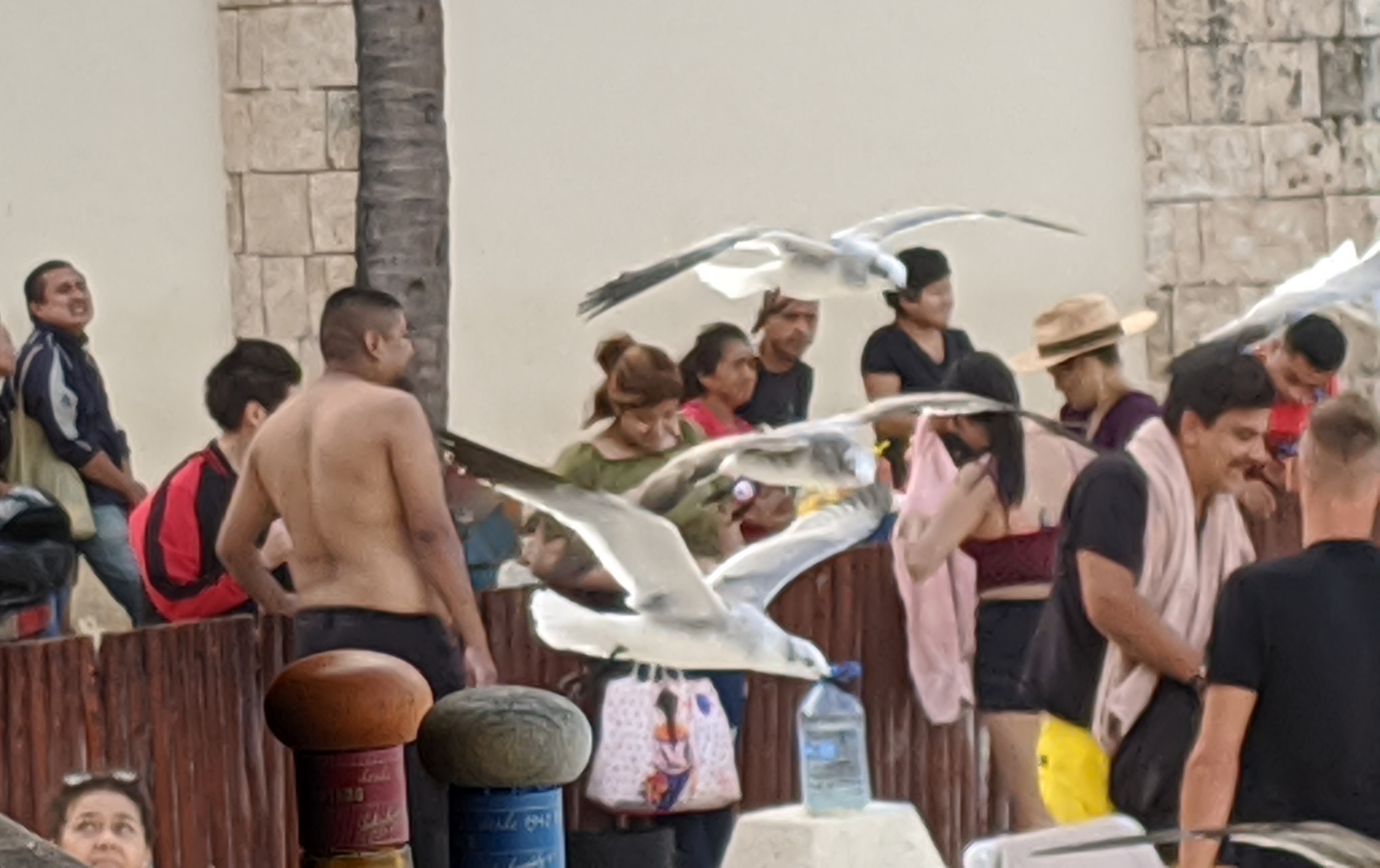 On day five, we finally made it to the beach and the famous hotel strip of Cancun--it took us 25 minutes via Uber to get there from our condo. As you can see, the beach is tragically filled with high rise hotels, barring the way to the most pristine beach areas. The only patch of beach we had access to was next to a pier--a small area open to the public: namely, low-end tourists like ourselves and the Mexican locals.